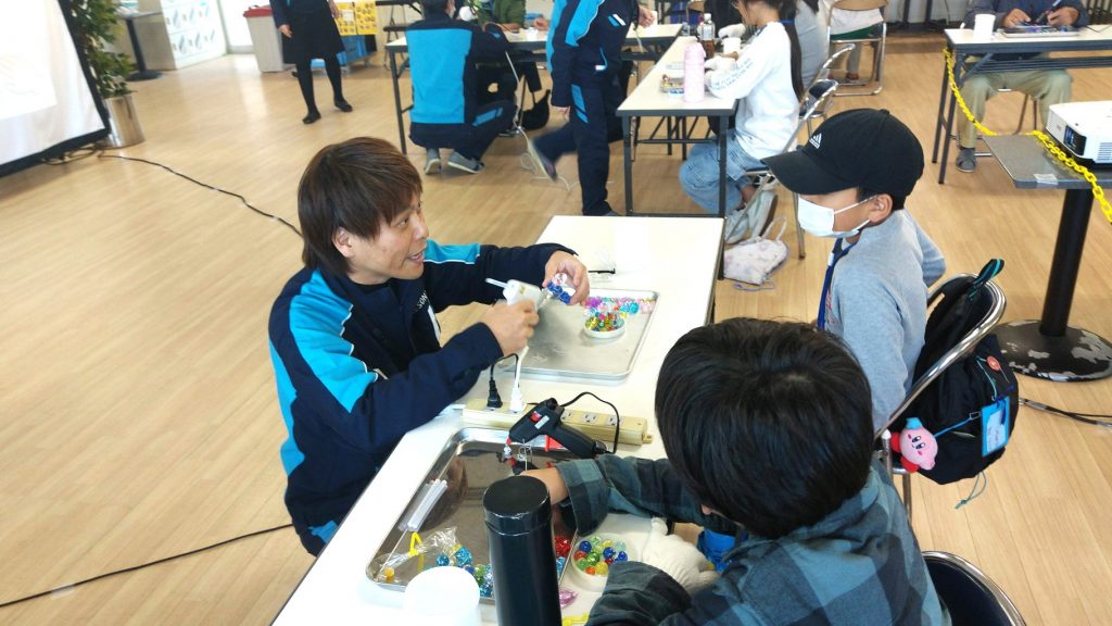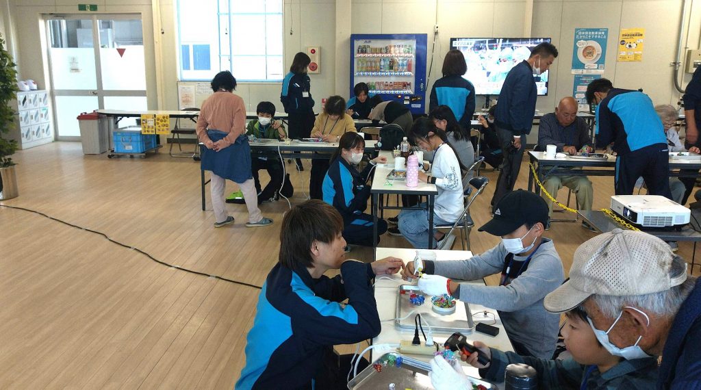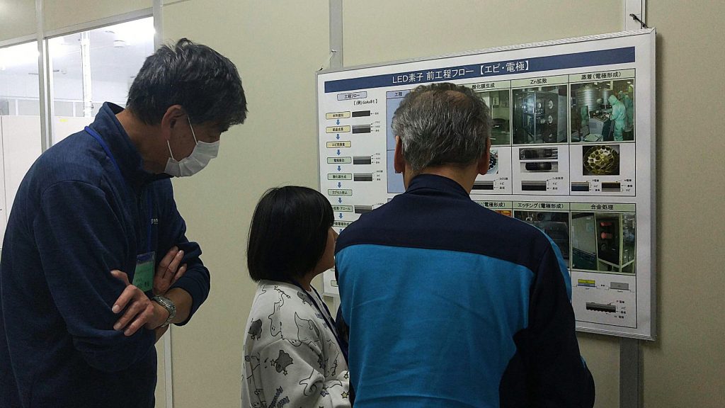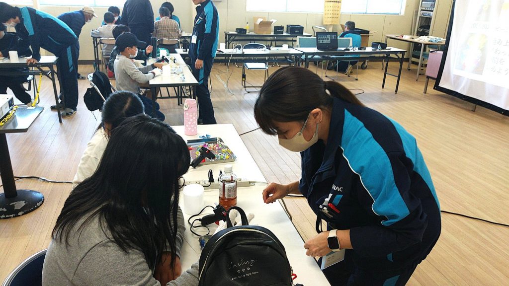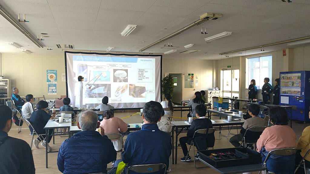 ご来場された方に、会社概要説明と工場見学、LEDを使った工作体験までしてもらいました。